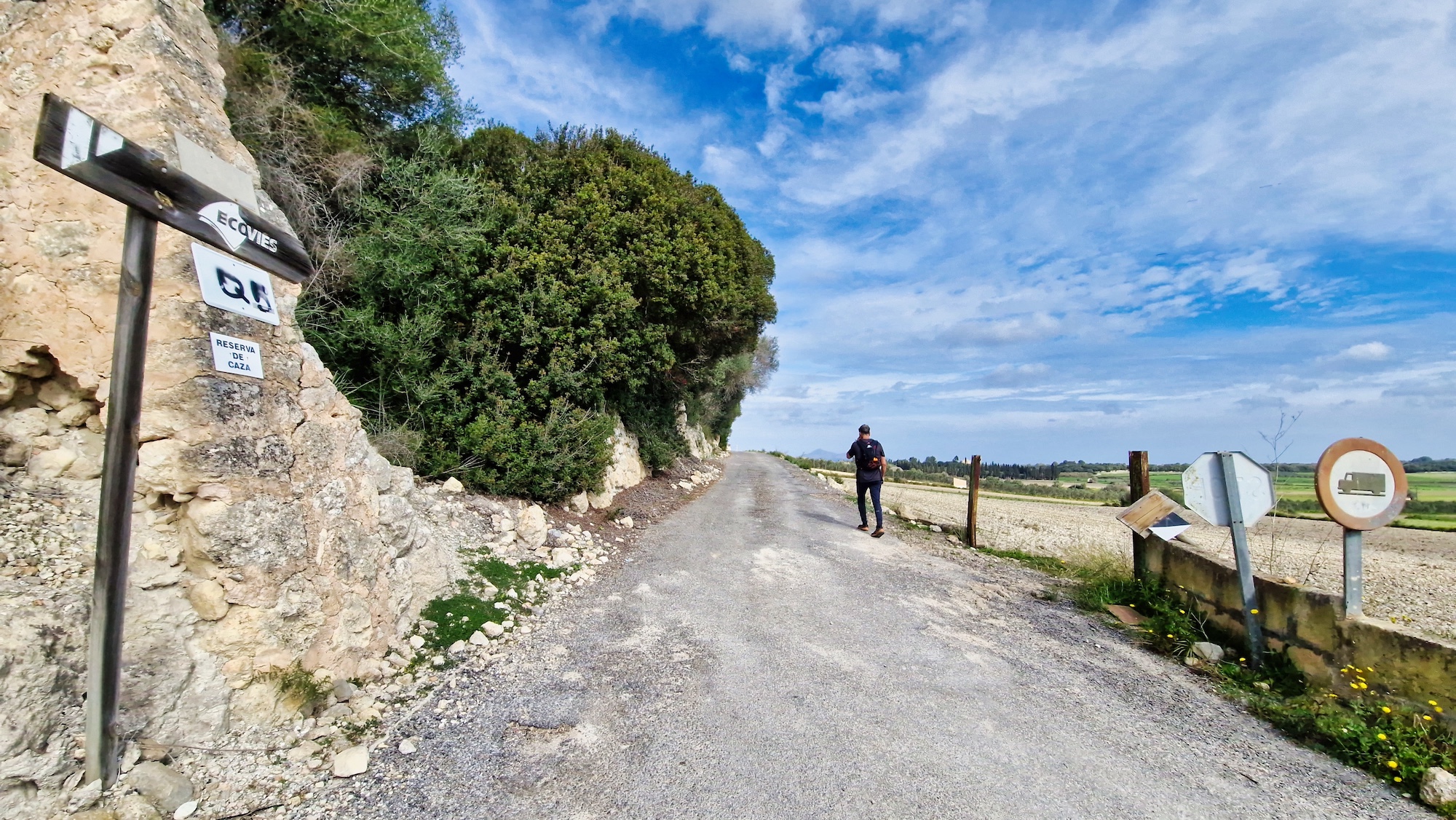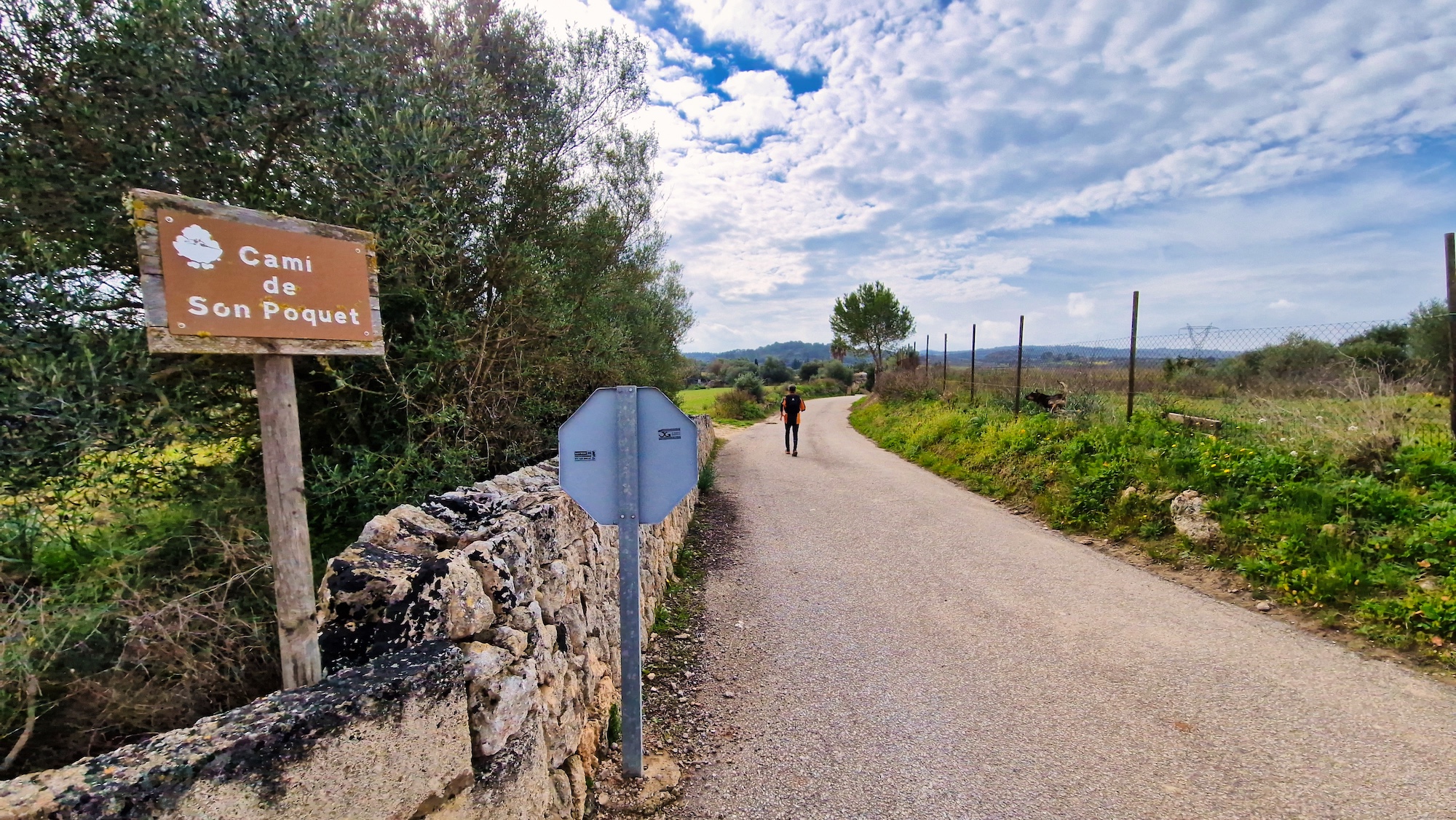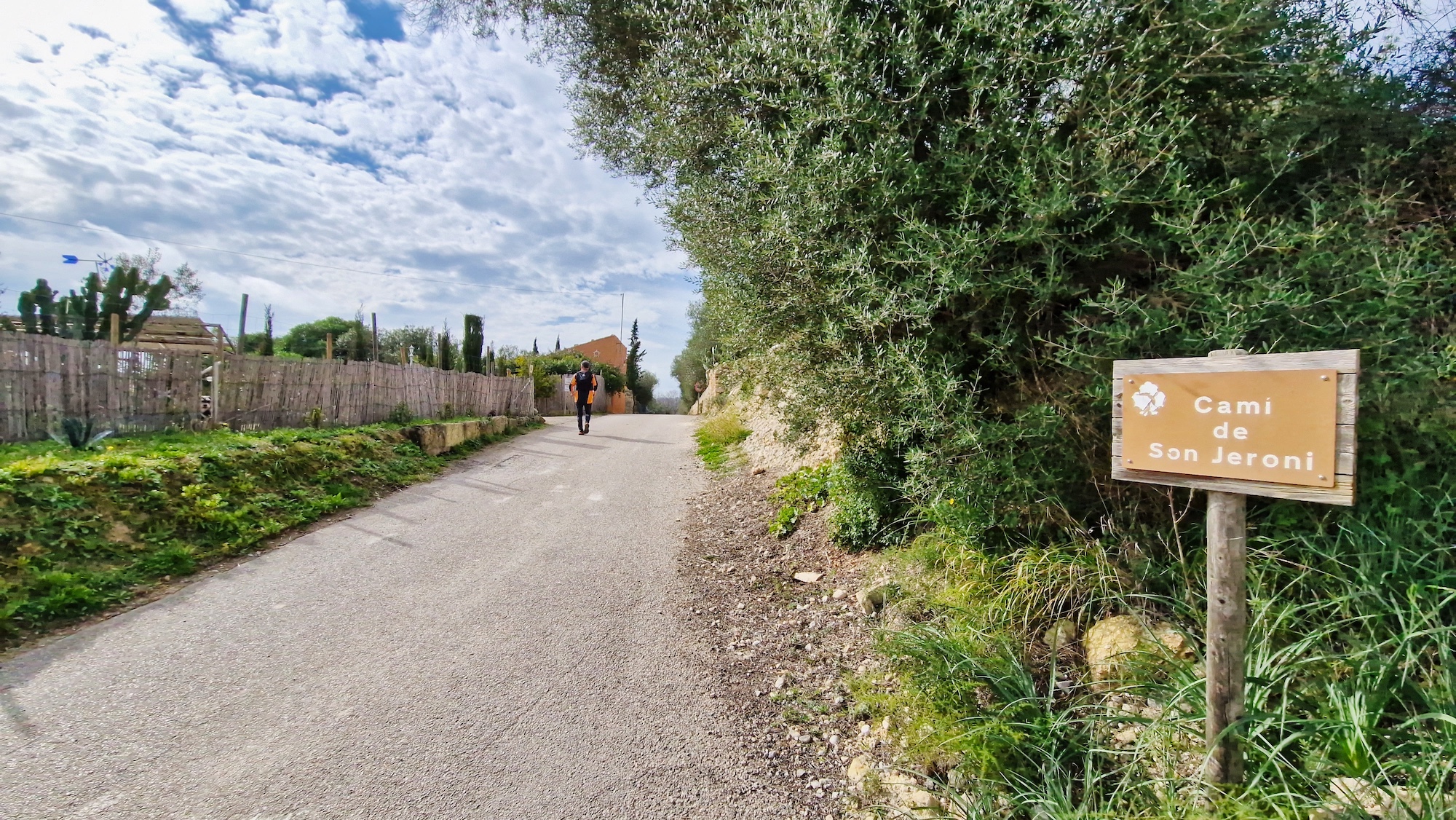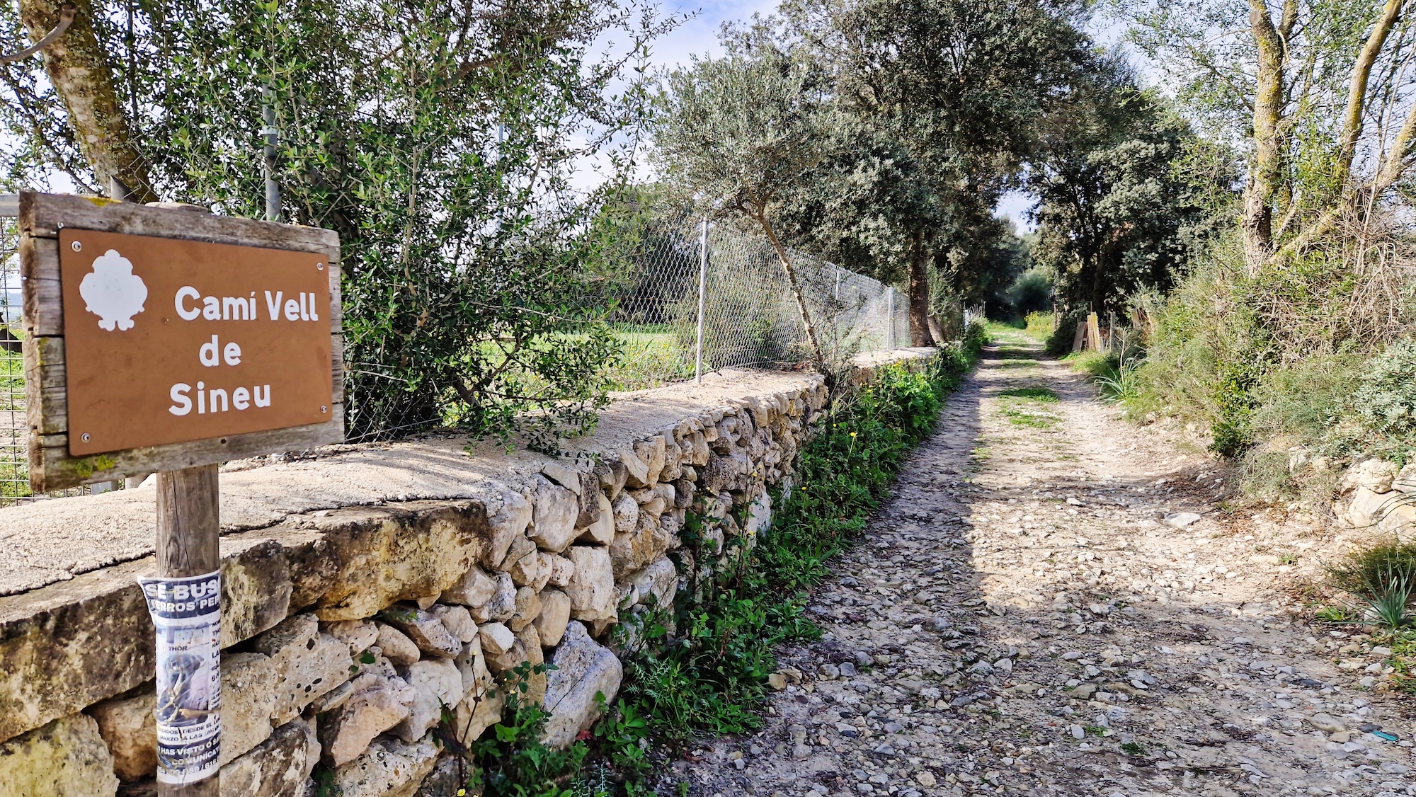 Tras la visita a la Font des Guals, seguimos por el camí de Son Jeroni unos minutos y entramos en un tramo de tierra, se trata del camí Vell de Sineu, indicado con un cartel y poste de madera. Alternamos senderos estrechos y pistas más anchas de tierra que tanto se agradecen para no tener que pisar tanto asfalto.