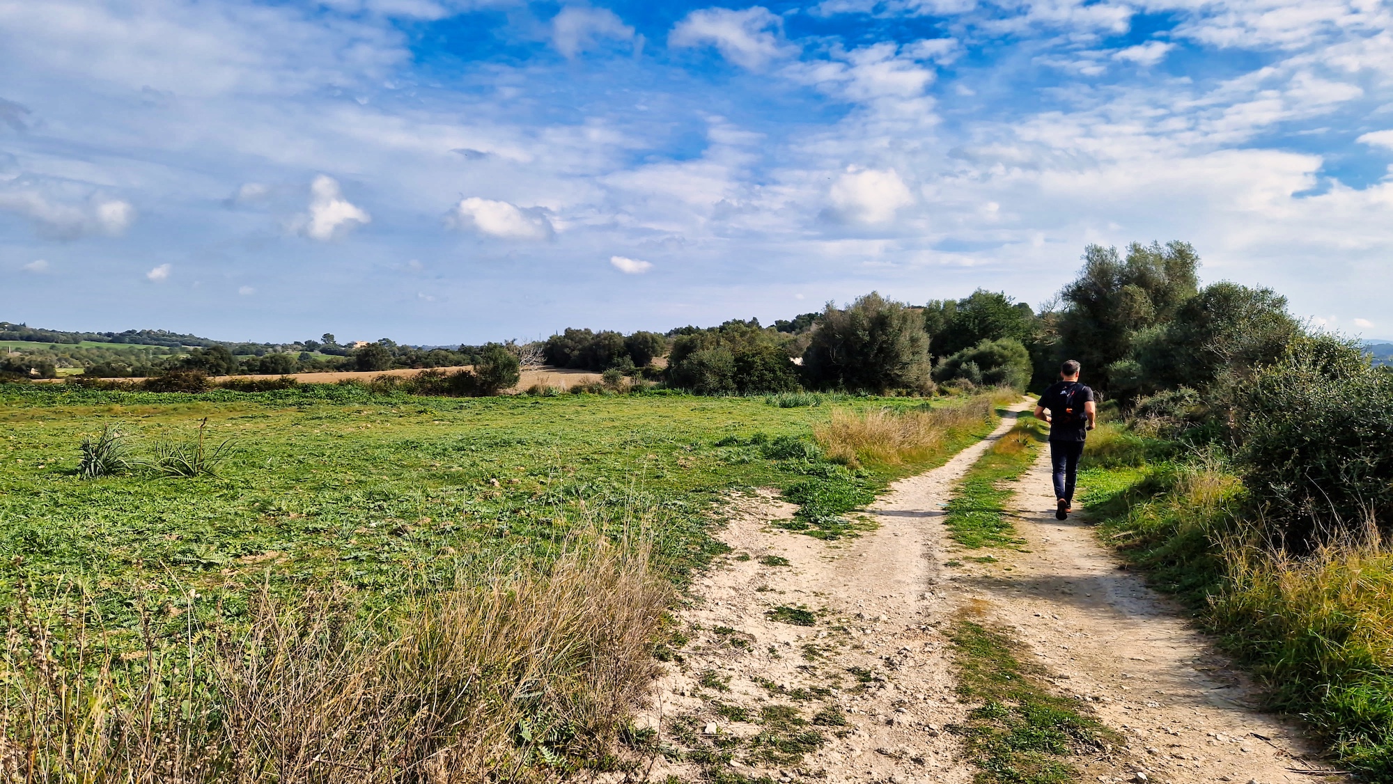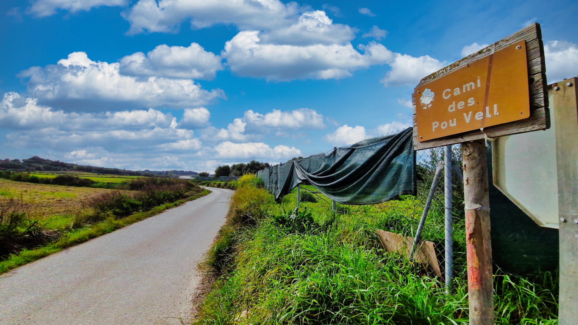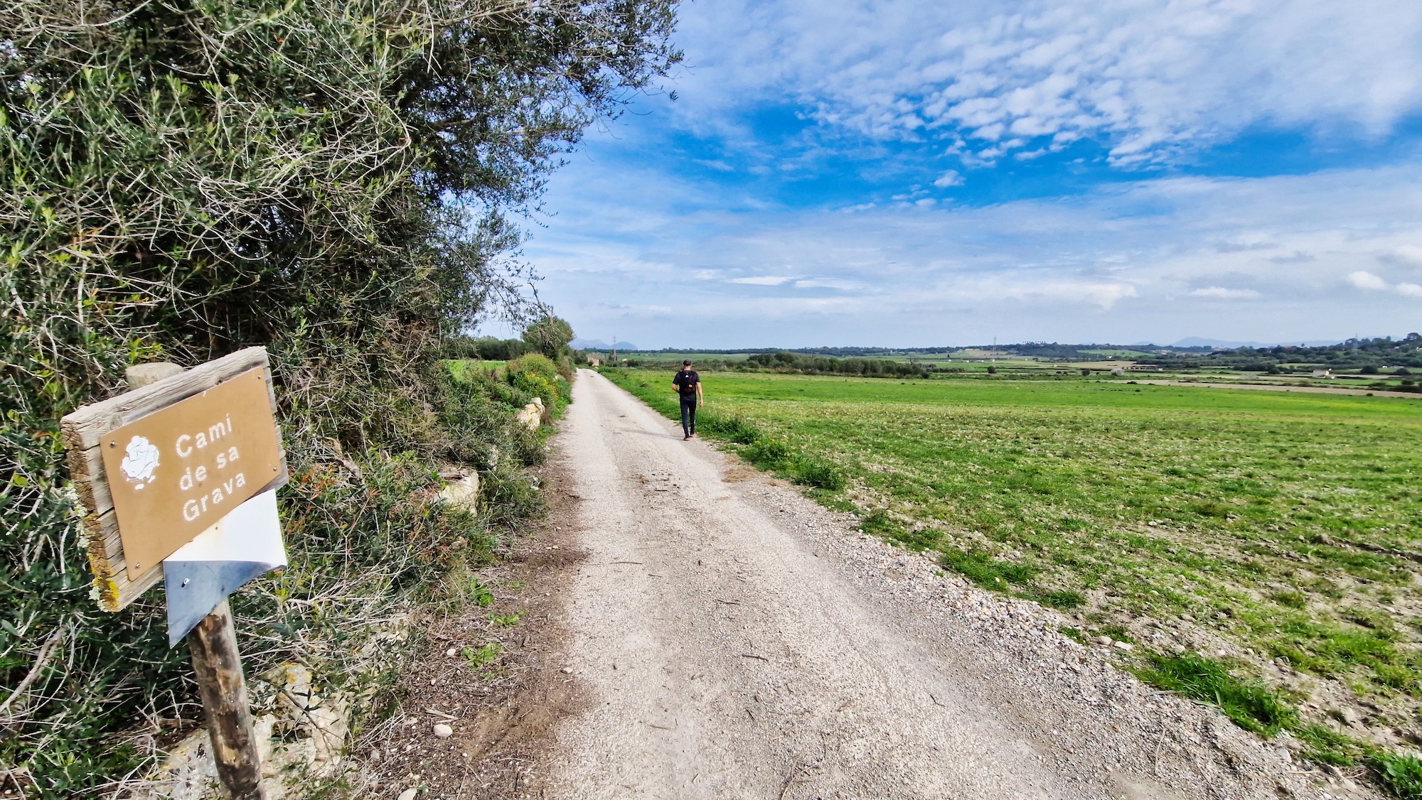 Tras la visita a la Font des Guals, seguimos por el camí de Son Jeroni unos minutos y entramos en un tramo de tierra, se trata del camí Vell de Sineu, indicado con un cartel y poste de madera. Alternamos senderos estrechos y pistas más anchas de tierra que tanto se agradecen para no tener que pisar tanto asfalto.