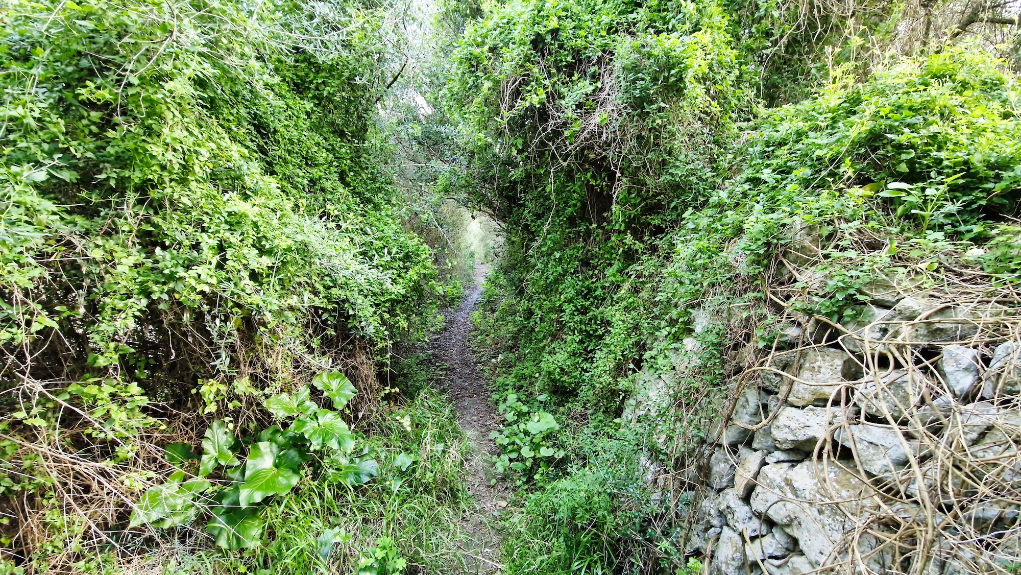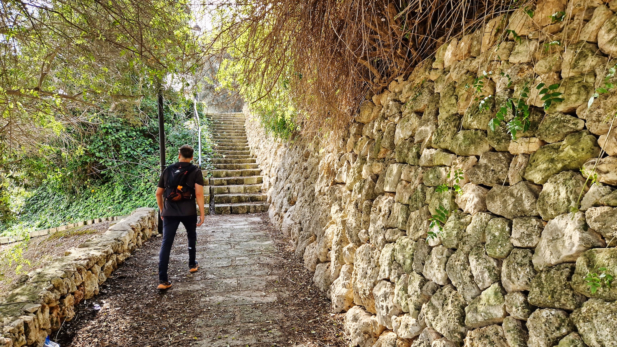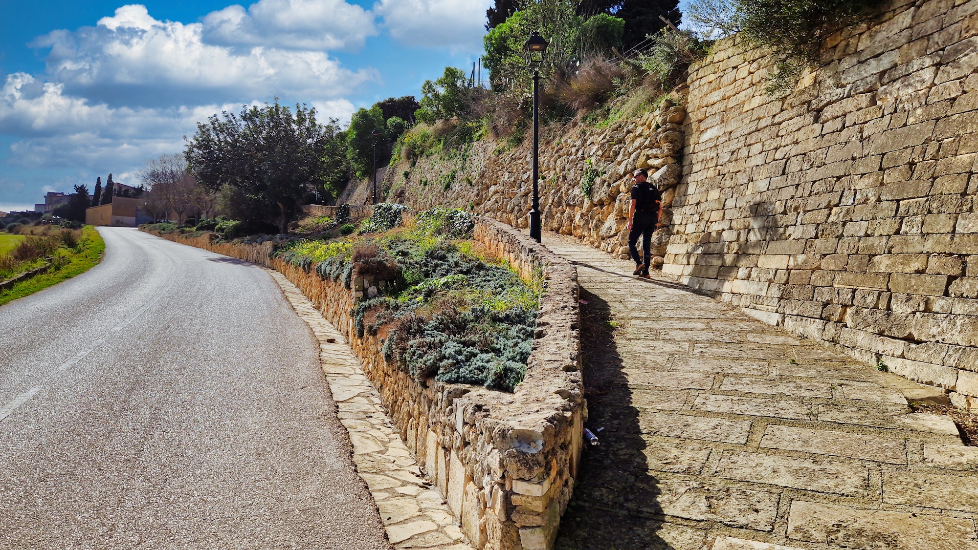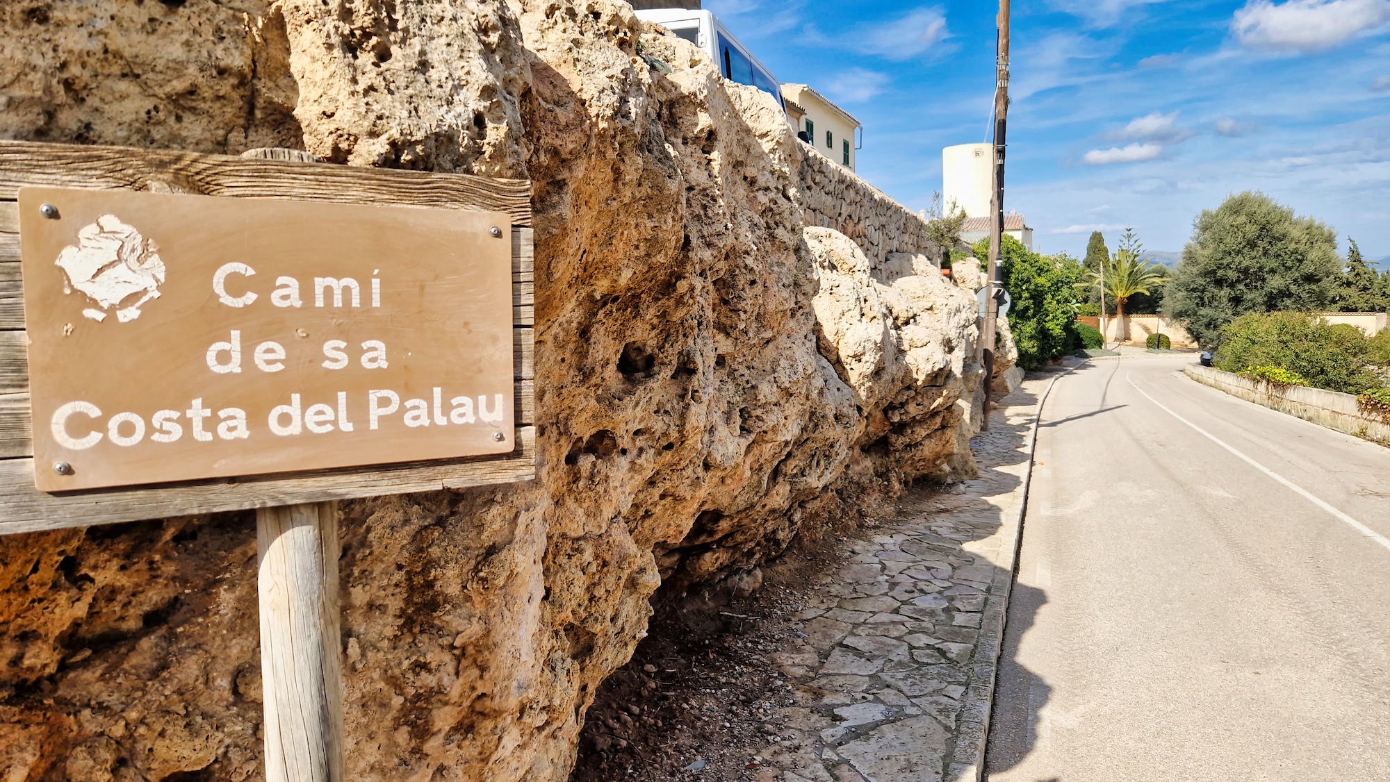 Tras la visita a la Font des Guals, seguimos por el camí de Son Jeroni unos minutos y entramos en un tramo de tierra, se trata del camí Vell de Sineu, indicado con un cartel y poste de madera. Alternamos senderos estrechos y pistas más anchas de tierra que tanto se agradecen para no tener que pisar tanto asfalto.