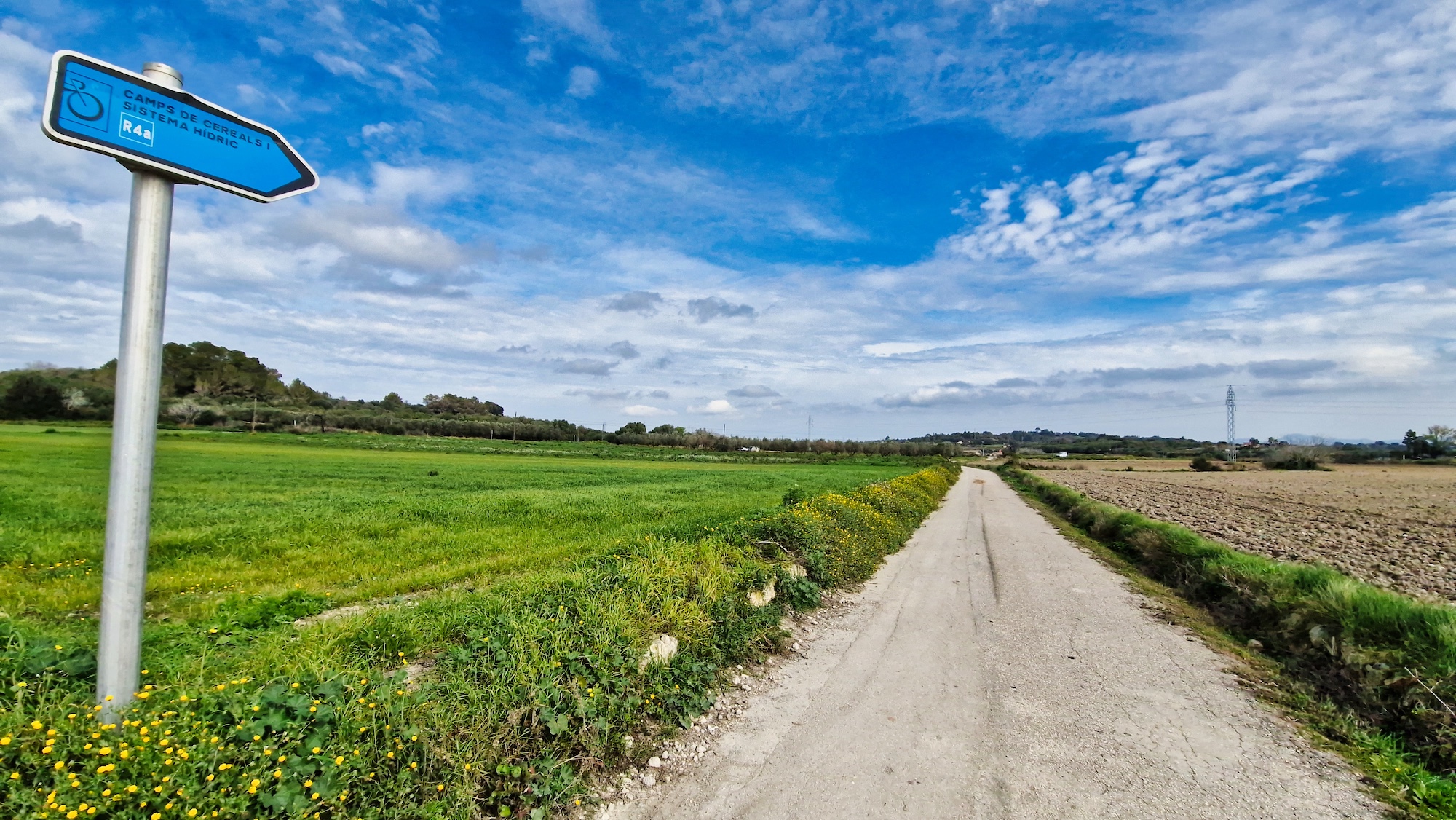 Giramos en dirección este y entramos en el municipio de Santa Margalida. Salimos del camino de tierra y seguimos un corto tramo por la carretera de Muro a María de la Salut, de nuevo dentro del municipio de Muro. El entorno es fabuloso, vamos regresando a Muro por rutas cicloturísticas entra campos de cereales y sistemas hídricos, una maravilla de paisajes.