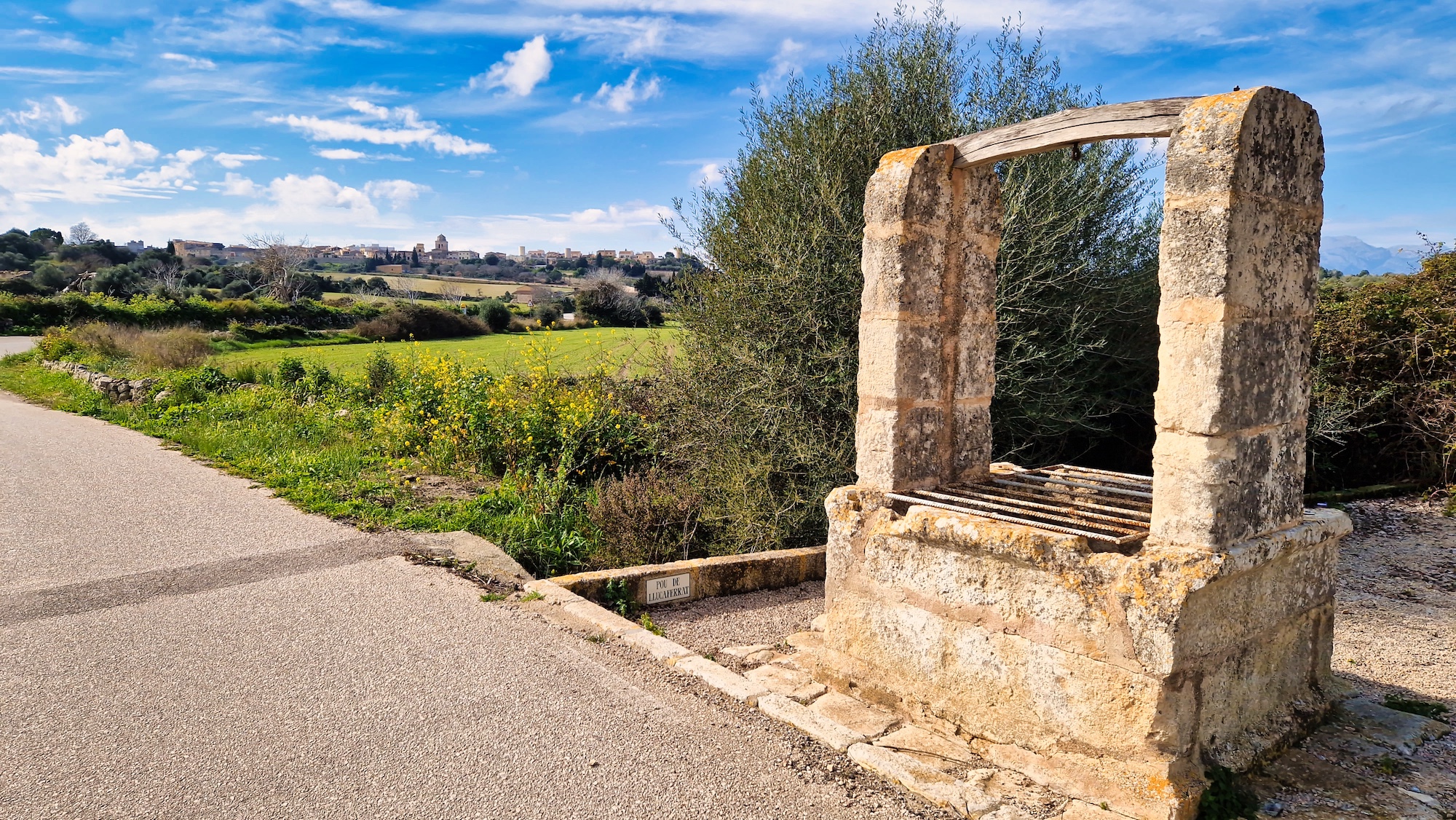 Proseguimos por caminos asfaltados por el camí de Son Jeroni, en el que más adelante, la presencia de unos álamos nos indican la presencia de sa Font des Guals, uno de los protagonistas de la ruta. Un pozo espectacular de uso común de grandes dimensiones, hecho de piedra de marés de forma rectangular. Se trata de un pozo de titularidad pública e incluido en el catálogo de Patrimonio del pueblo por su gran interés histórico y etnológico.