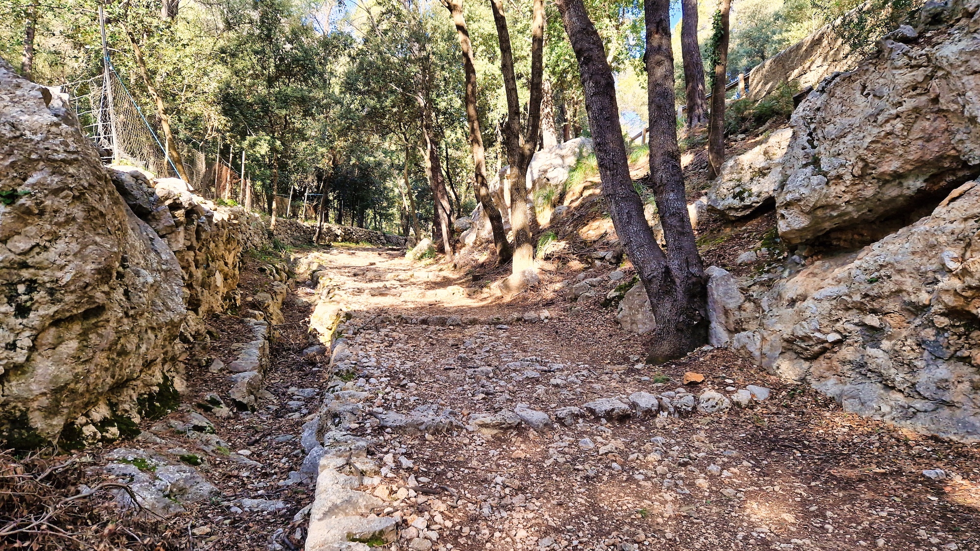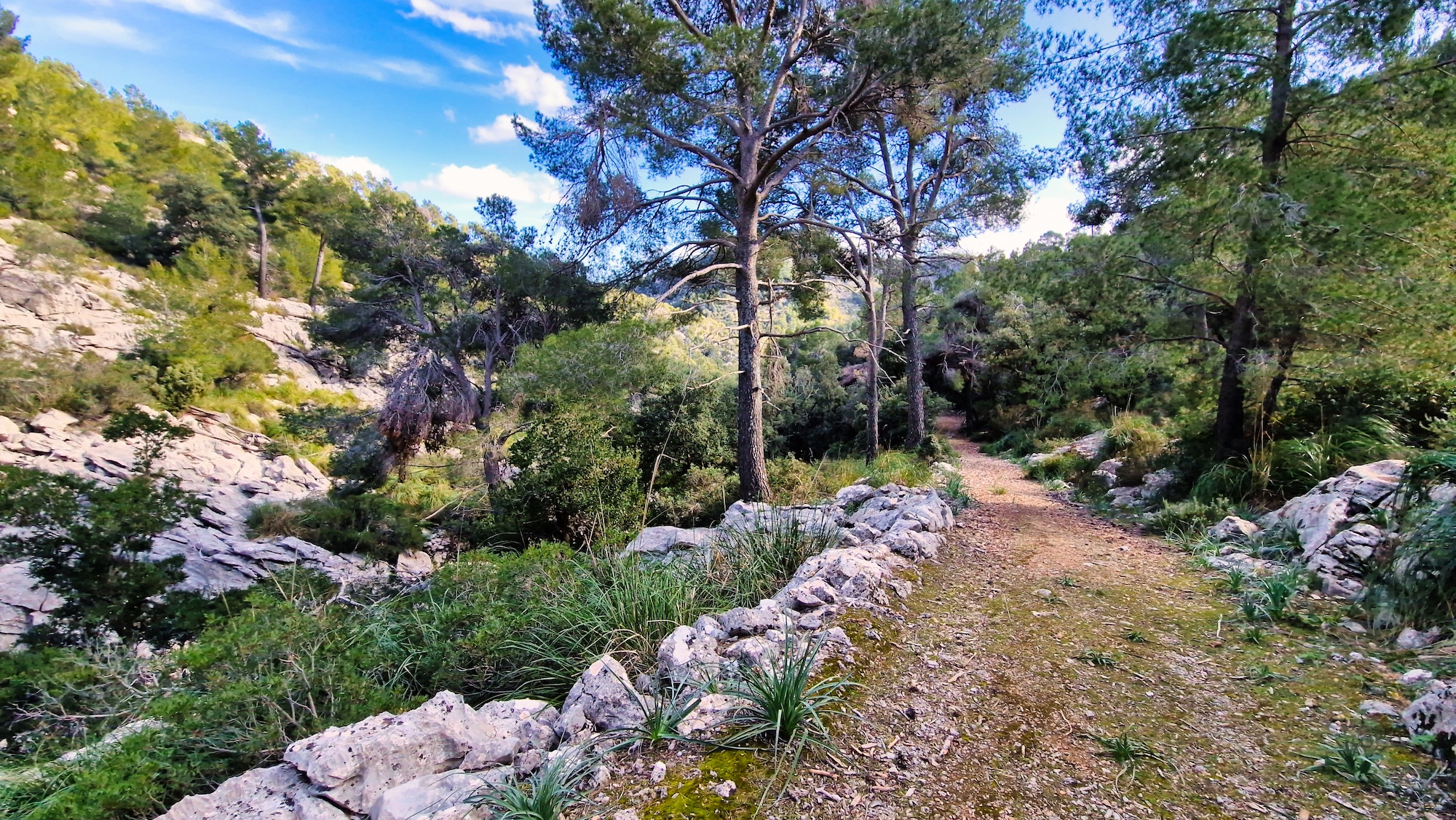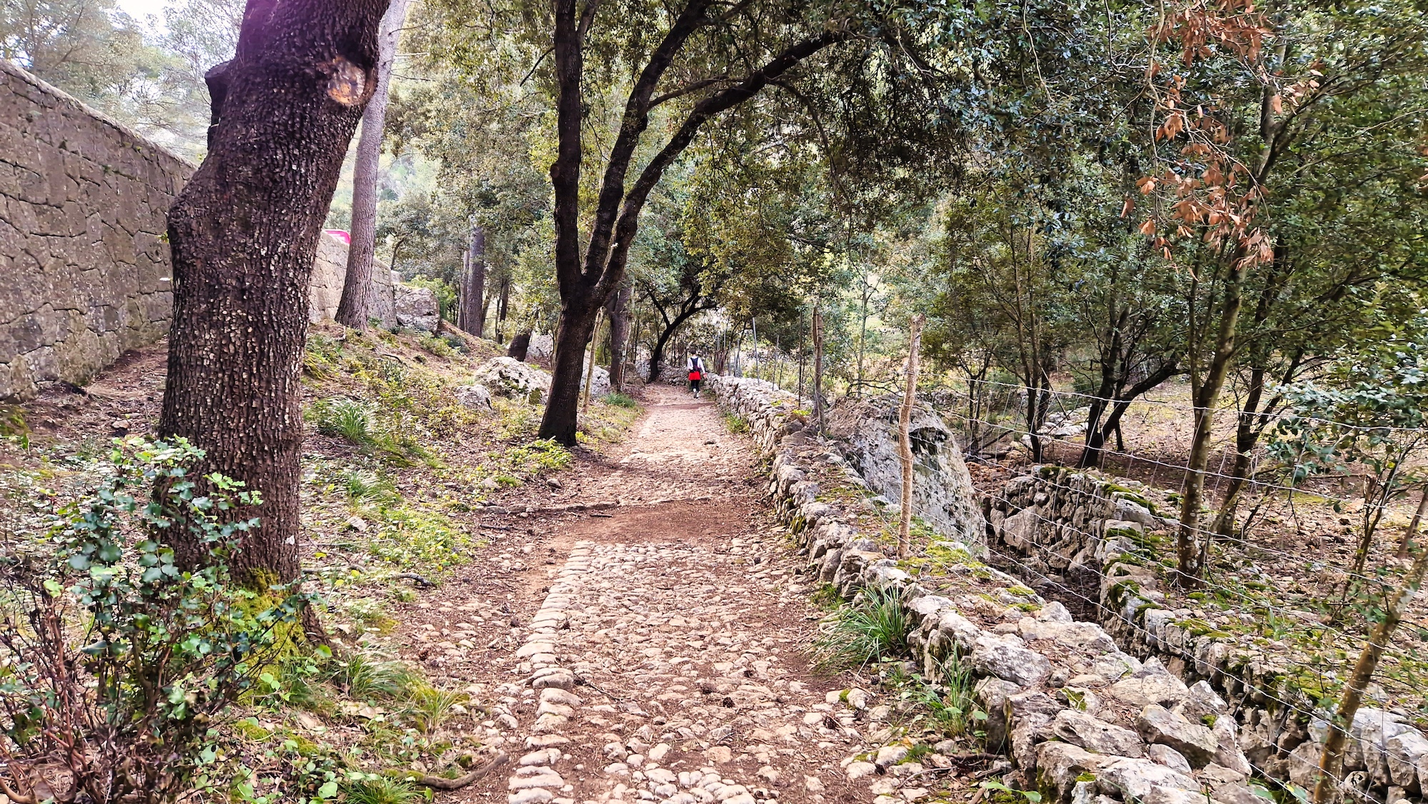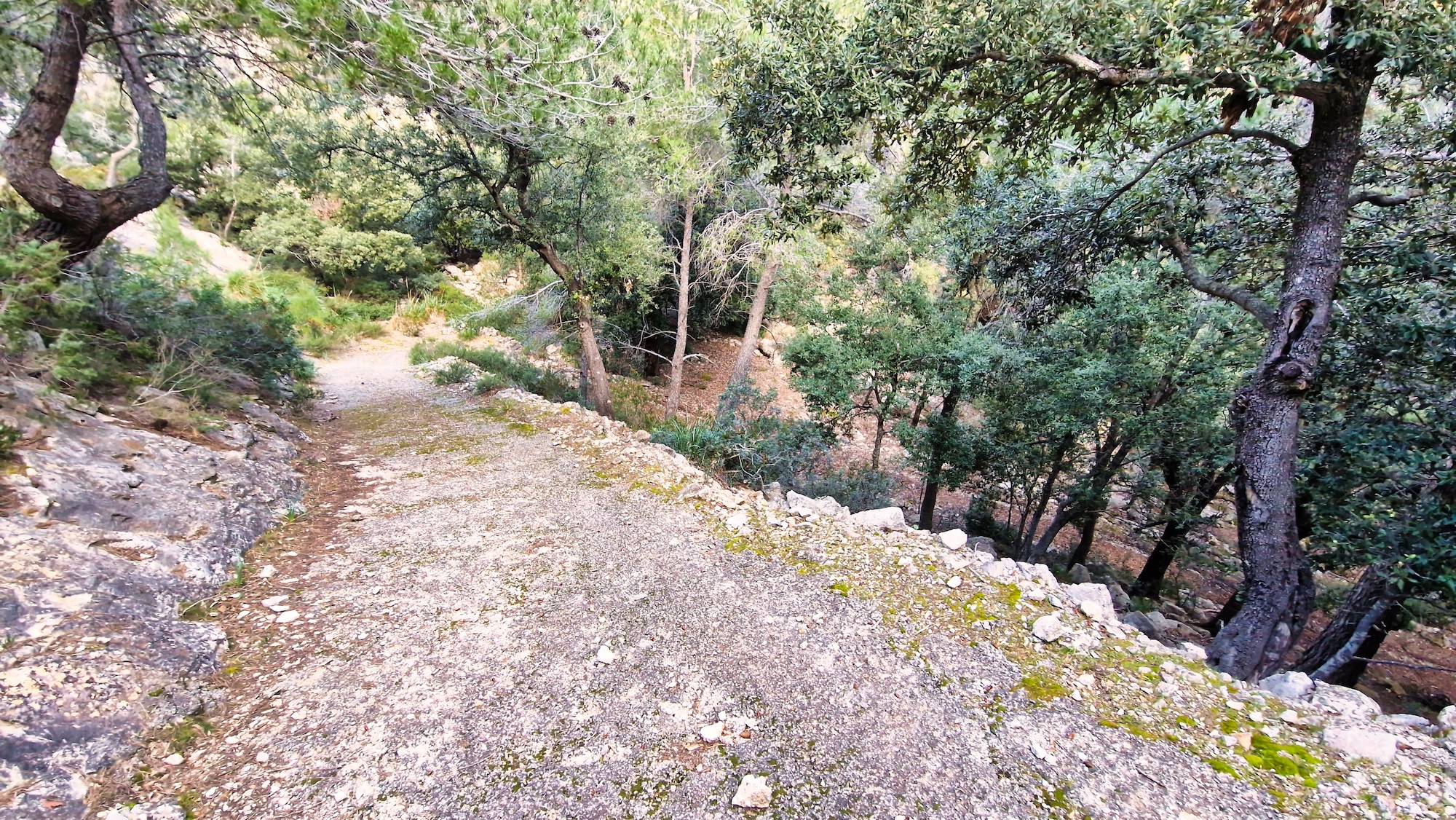 Es una zona que me encanta del camí Vell de Lluc, es una pista muy buena para correr y al estar dentro de un bosque de encinas, hay una buena sombra para los meses estivales. Antes de llegar a la zona llamada Sa Llangonissa, nos desviamos por el camino del Pas de n’Arbona hacia el Comellar de s’Homo.