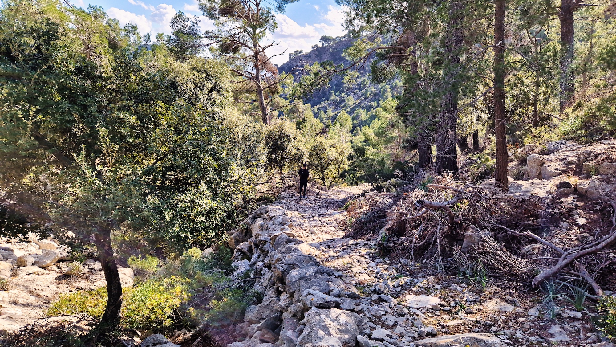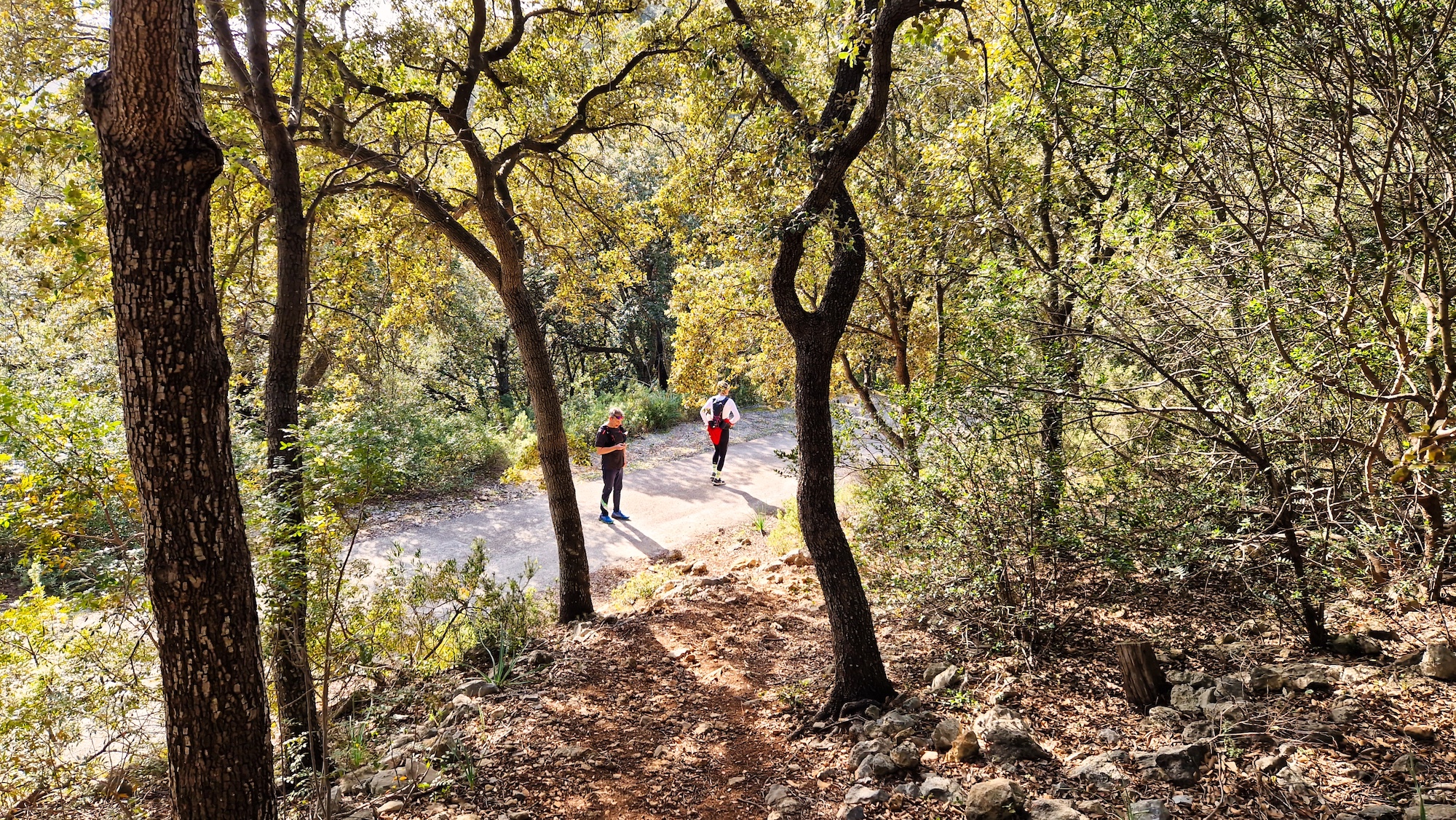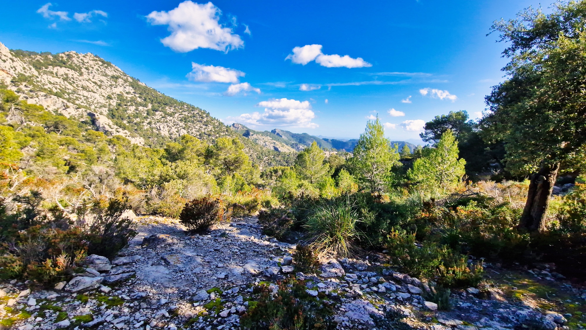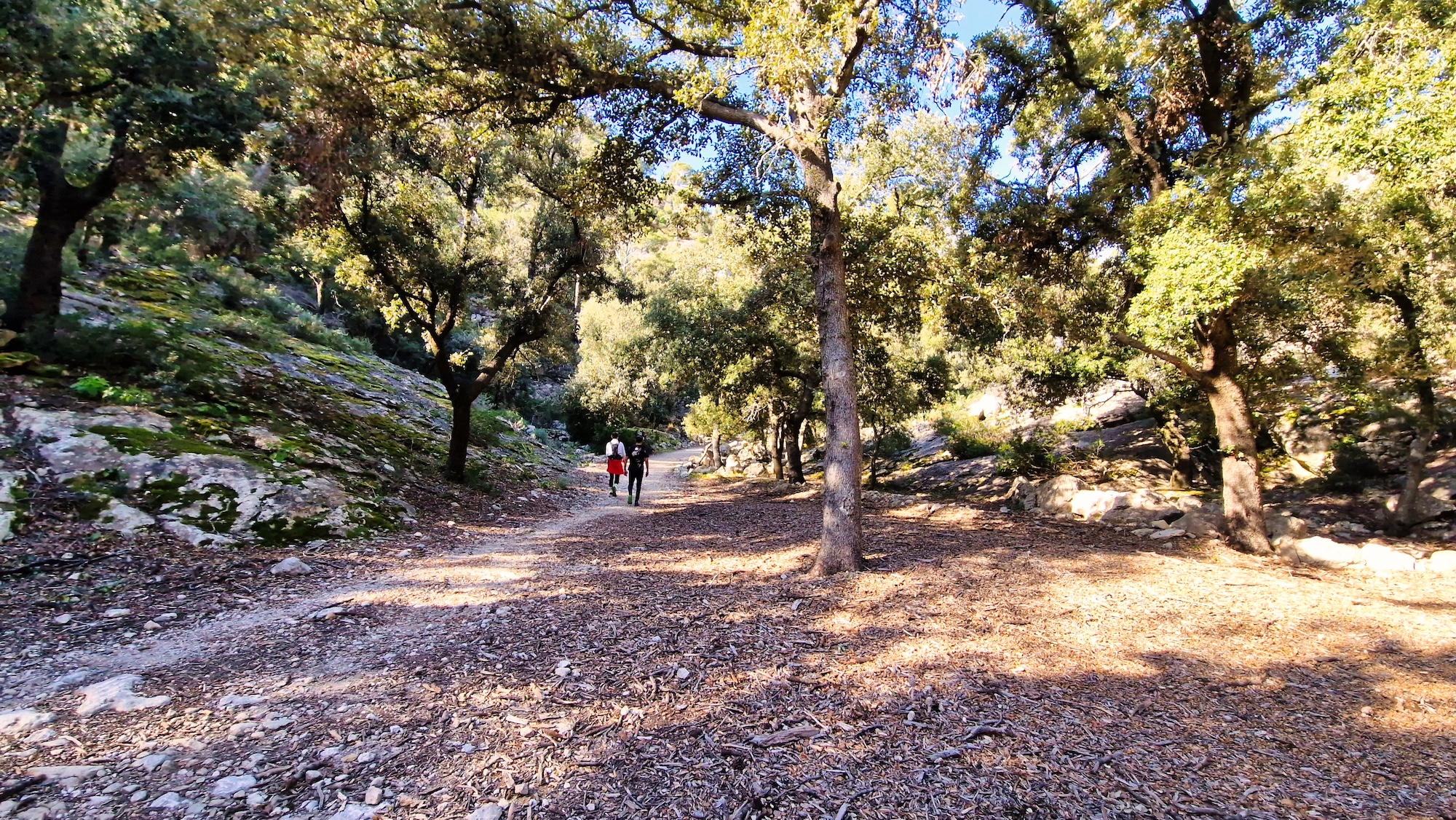 Es una zona que me encanta del camí Vell de Lluc, es una pista muy buena para correr y al estar dentro de un bosque de encinas, hay una buena sombra para los meses estivales. Antes de llegar a la zona llamada Sa Llangonissa, nos desviamos por el camino del Pas de n’Arbona hacia el Comellar de s’Homo.