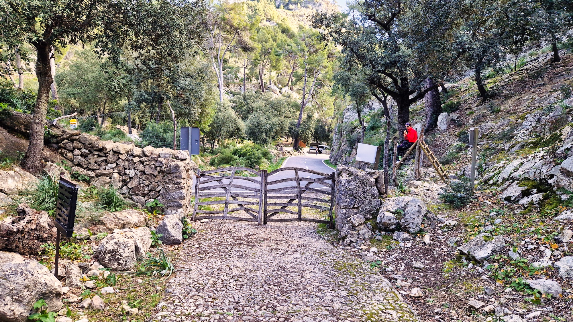 Barrera de salida del Comellar de s'Homo, en la carretera de Lluc, justo en el área Recreativa de Sa Coveta Negra.