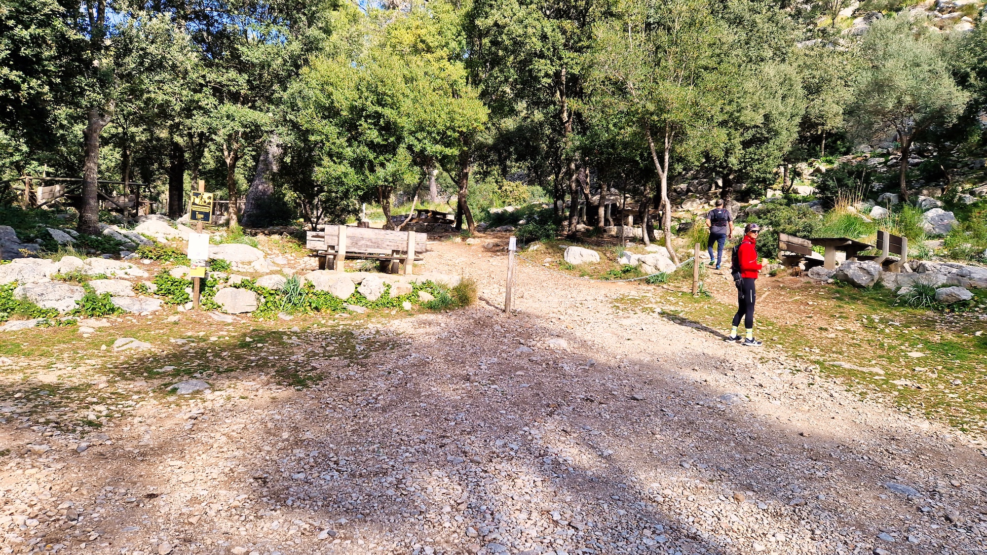 Llegamos al Àrea Recreativa de sa Coveta Negra y al pasar por debajo de un puente, el camino sigue por el GR222 hacia Lluc y de introduce dentro del Comellar de sa Coveta Negra.
