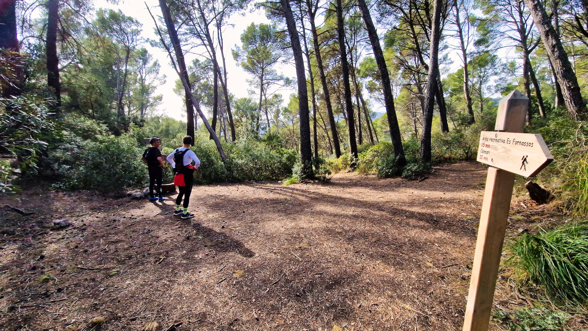 Llegamos al área Recreativa de Es Fornassos, esta área es una zona de pinar con todos los servicios y cabe destacar que cerca de allí hay un poblado talayótico en mal estado