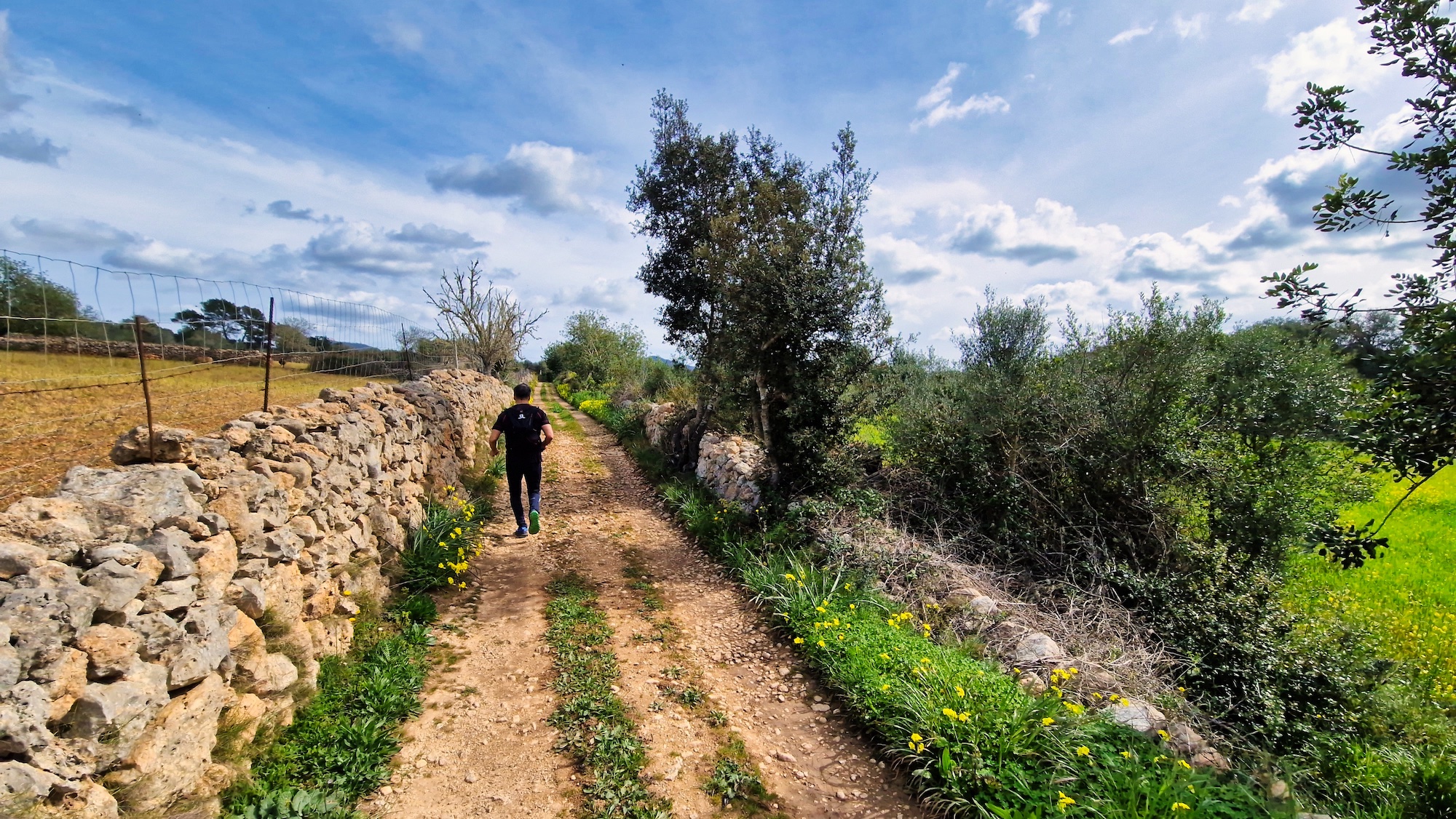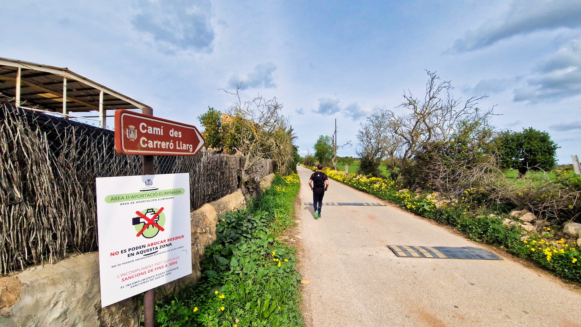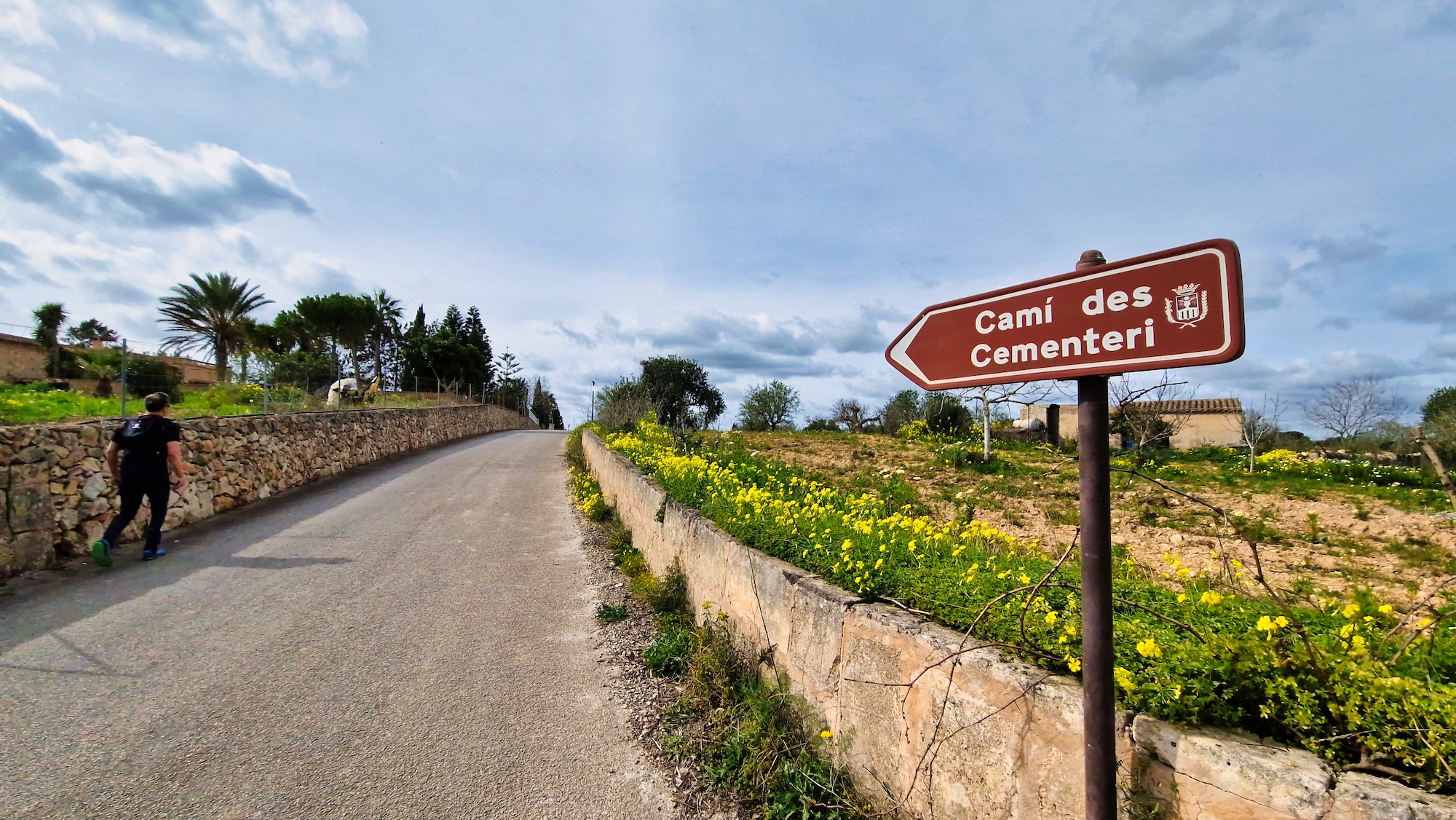 Salimos del núcleo de Ca’n Concos en dirección norte por el Camí des Carreró Llarg, que en pocos metros abandonamos por la izquierda para ir en dirección al cementerio, pasando al lado de tierra santa. Desde el mismo cementerio, giramos hacia la derecha por otro camino asfaltado que en pocos metros se convierte en una pista de tierra excelente para correr.