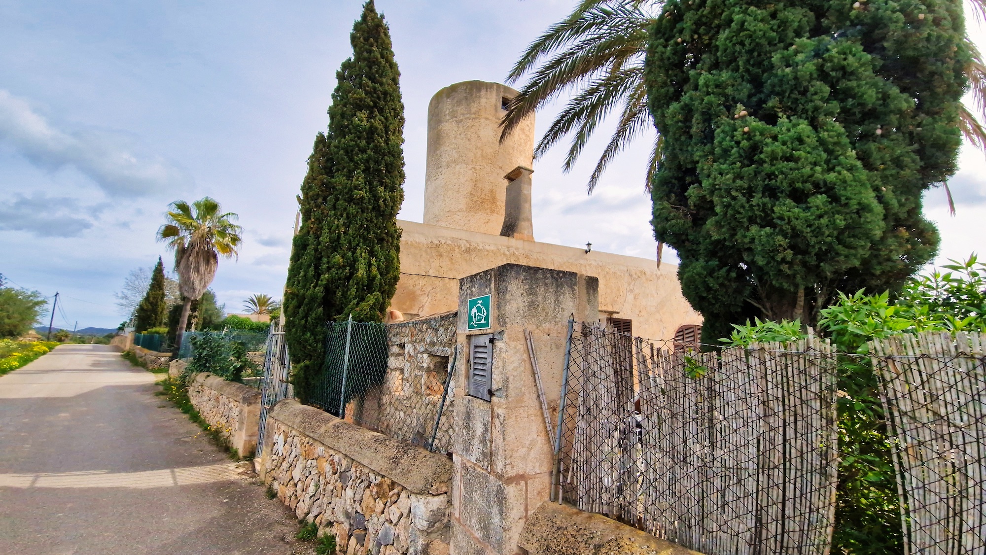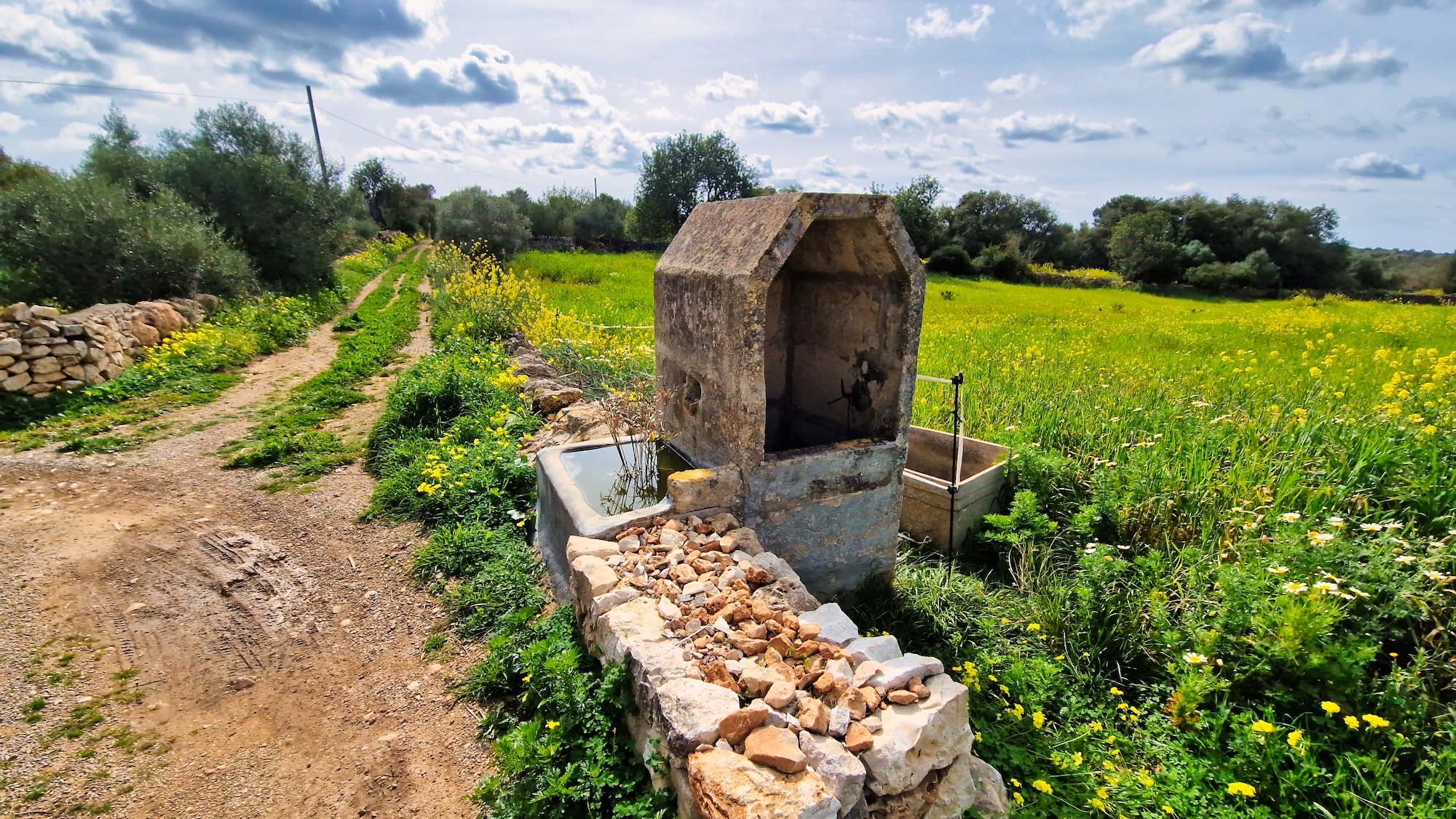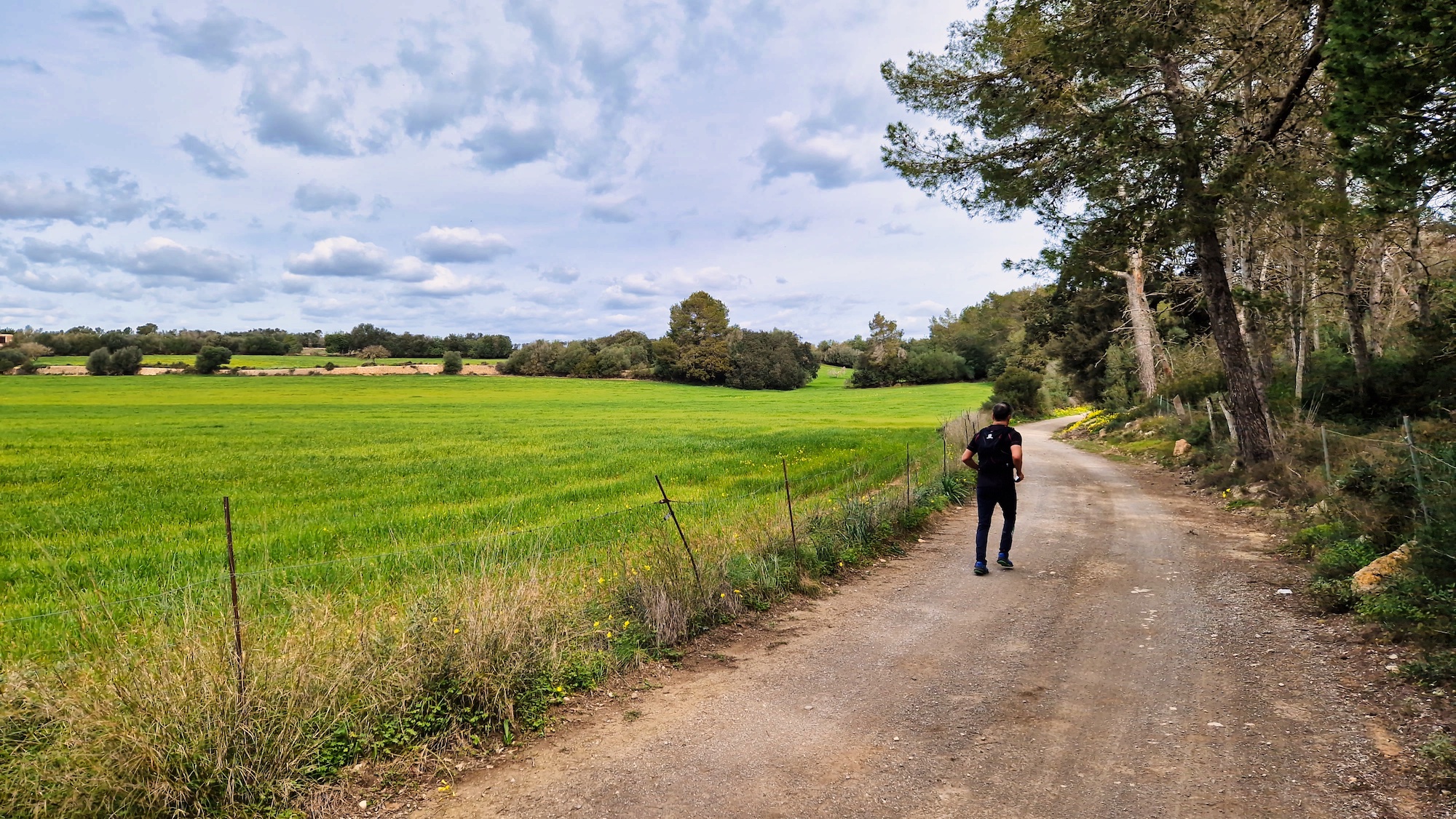 En los siguientes km alternamos caminos de tierra preciosos, pasamos por fincas rurales, pozos, tramos más sombríos entre bosques, una maravilla. Continuamos un tramo asfaltado por el Camí de Ca’n Barres y en el km 11 de ruta, llegamos a la Finca de Ca’n Dimoni.