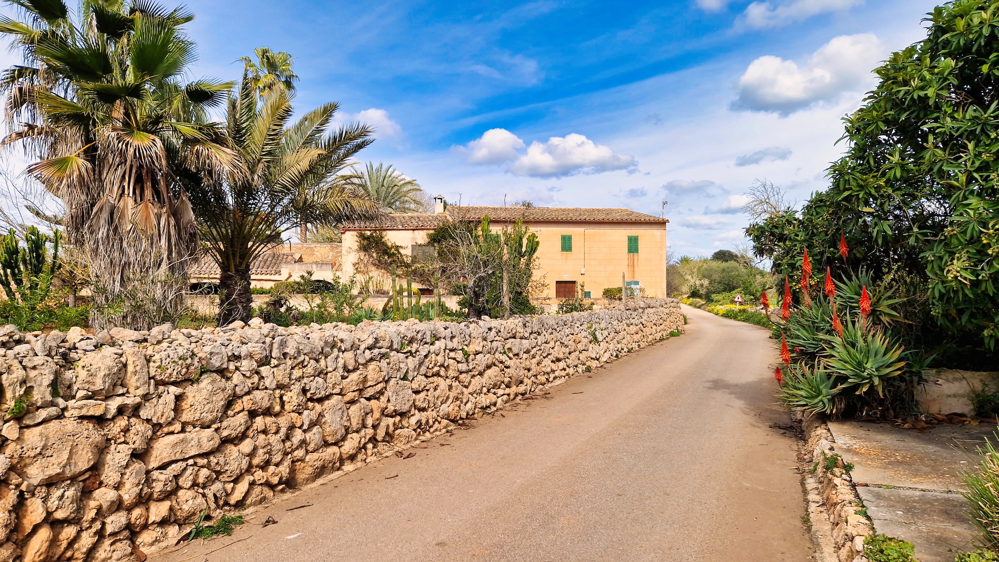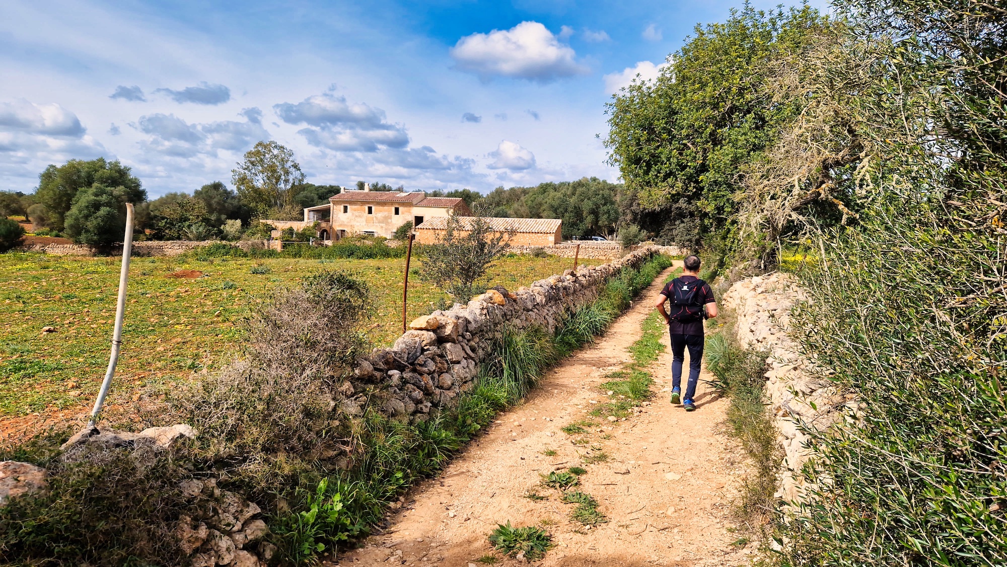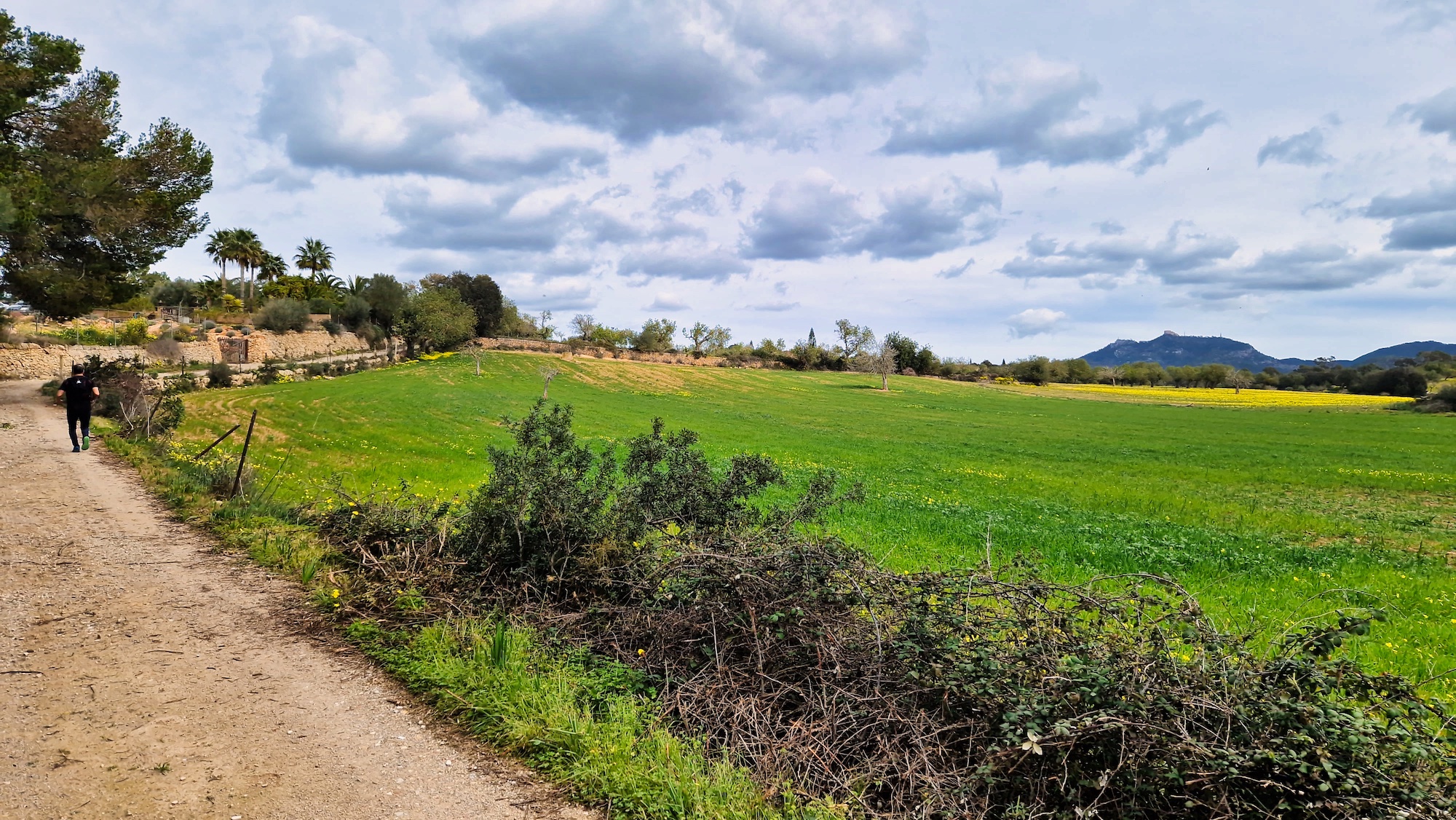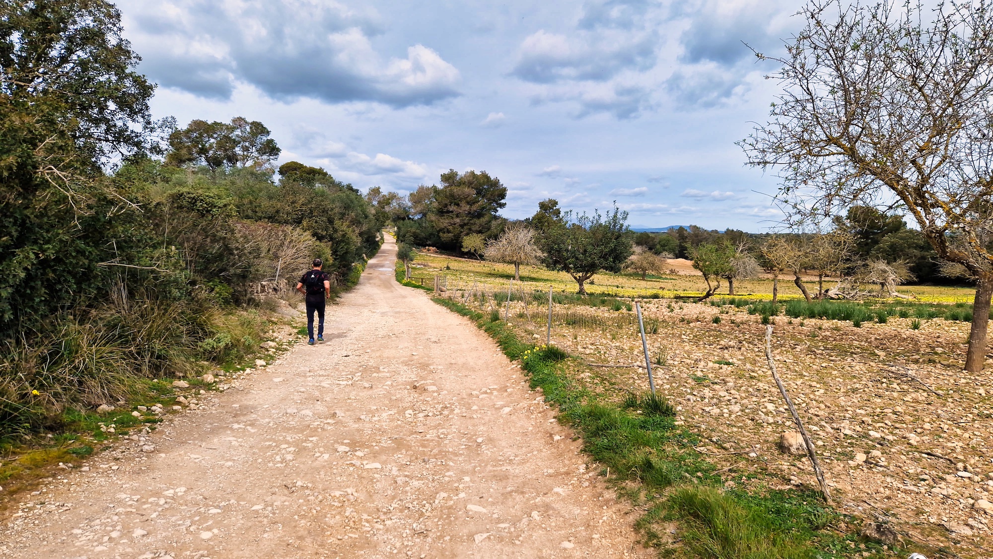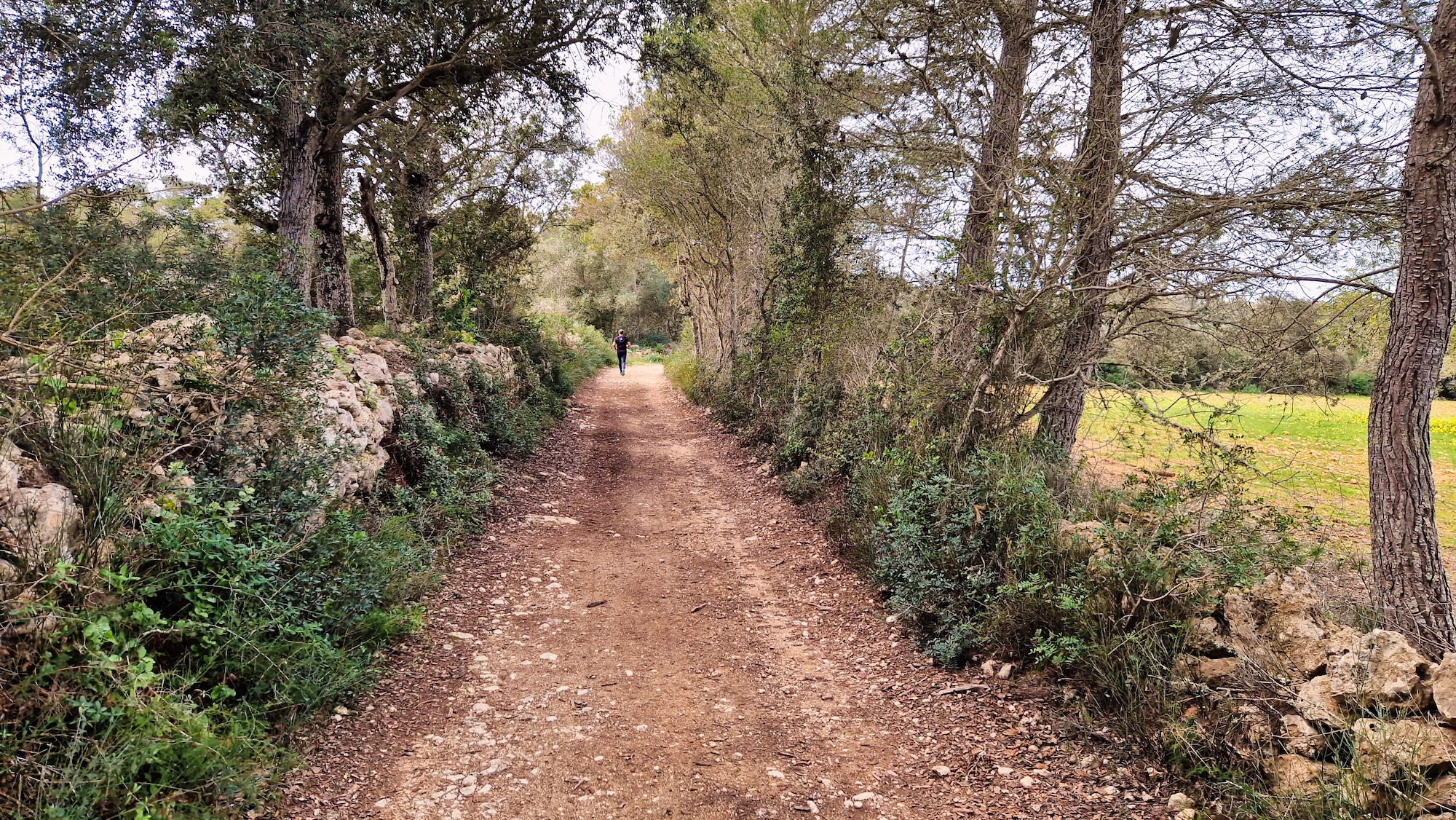 Este camino de tierra se dirige hacia la Finca de Ca’n Sales, el paisaje es encantador en invierno, campos verdes encerrados en paredes de piedra y en ligera pendiente ascendente, entramos en el magnífico bosque de Son Sales, que dan entrada a la finca homónima, típica finca de estilo mallorquín que ha sido restaurada.