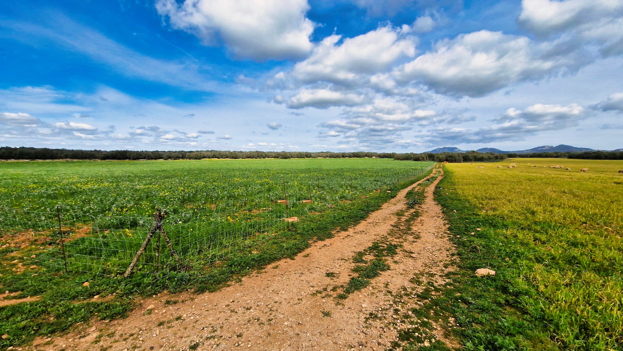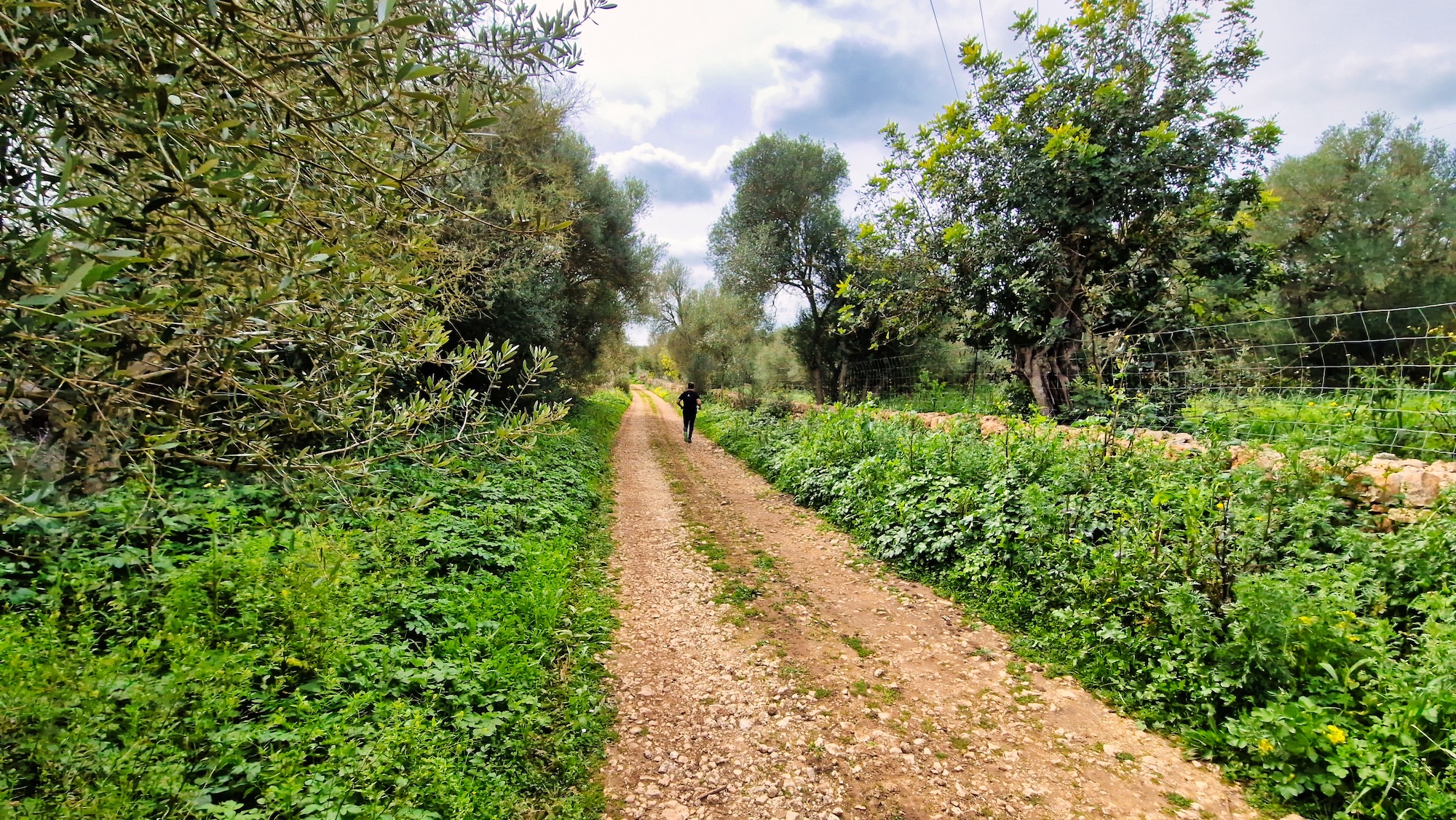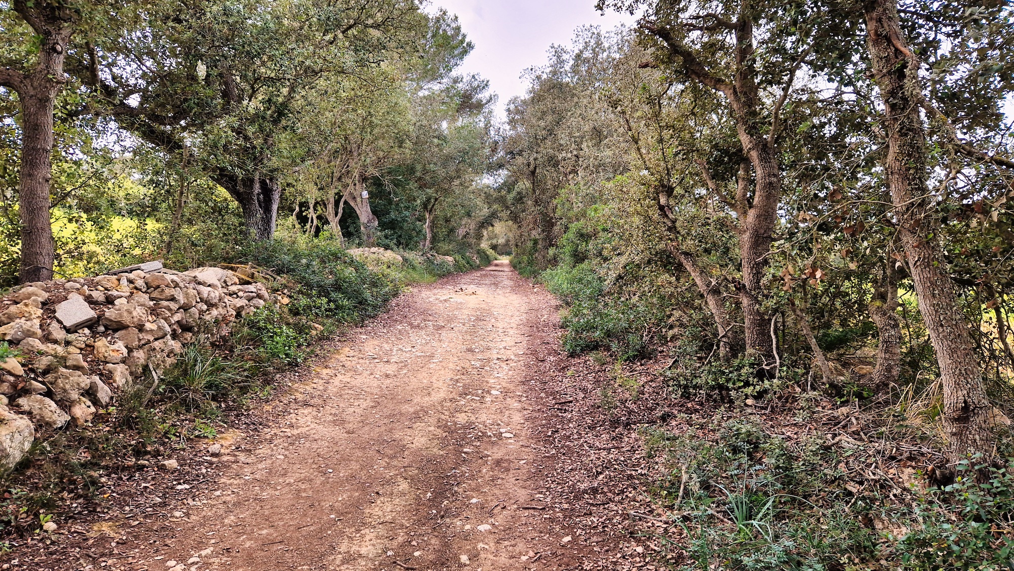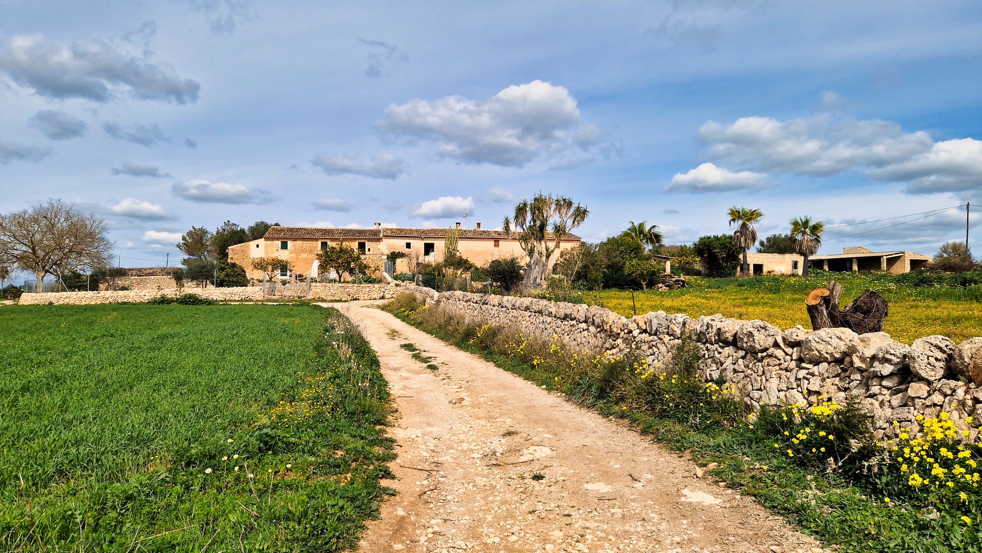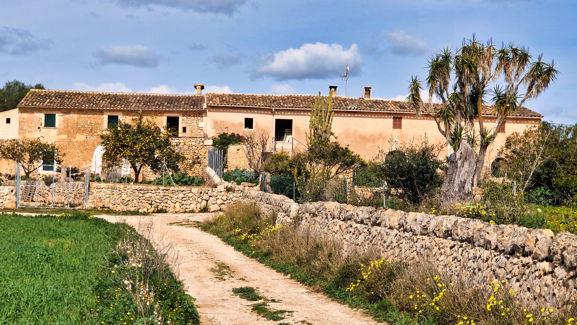Este camino de tierra se dirige hacia la Finca de Ca’n Sales, el paisaje es encantador en invierno, campos verdes encerrados en paredes de piedra y en ligera pendiente ascendente, entramos en el magnífico bosque de Son Sales, que dan entrada a la finca homónima, típica finca de estilo mallorquín que ha sido restaurada.